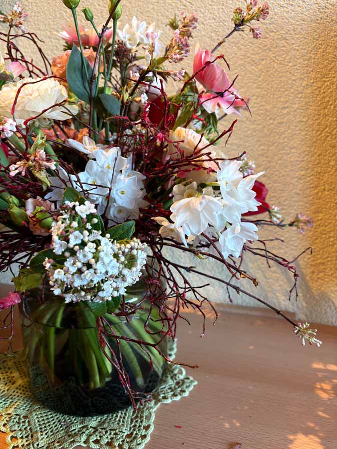 Kunstvoll arrangierte Blumensträuße